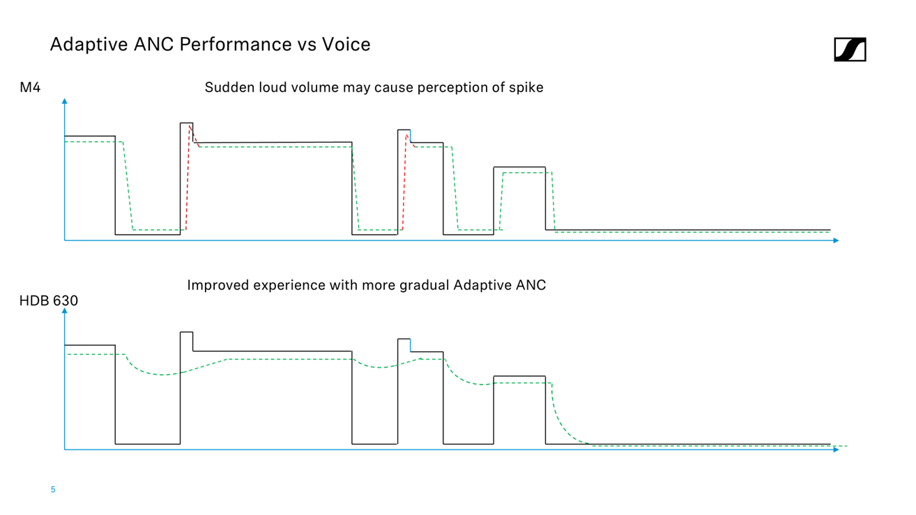 - As a frequent traveler to Japan, one of our designers noticed how train announcements sounded over headphones. For the HDB 630, our ANC engineer refined the timing of the Adaptive ANC response. This adjustment allows users to enjoy a more comfortable listening experience, even when standing under broadcast speakers on a train station platform.