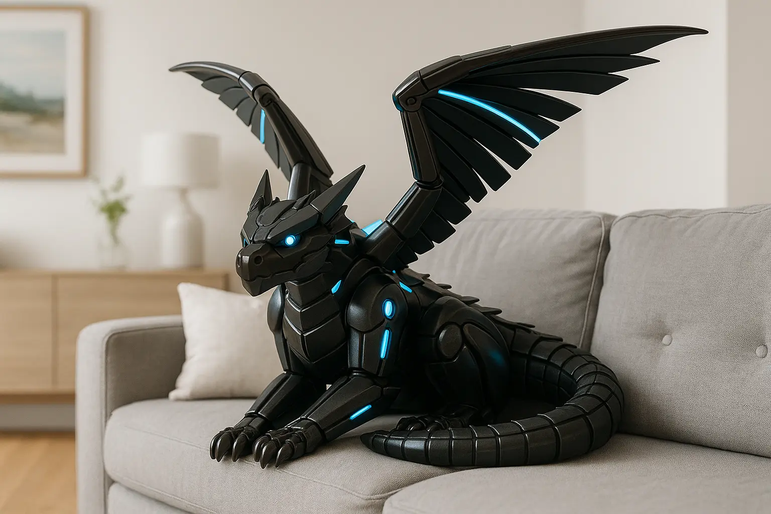 After a few minutes, your Dragon’s wings should start to unfold, and he will begin to move his neck and tail. During this calibration and adjustment phase, you should not move or push your Dragon, as it might affect calibration results.